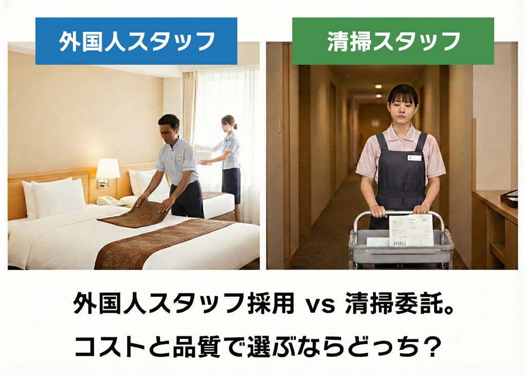 外国人スタッフ採用 vs 清掃委託(アウトソーシング)。コストと品質で選ぶならどっち?